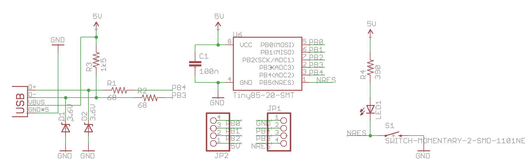 AT MAX ITS 0.24in x 0.41in, If i had a Atiny85 id make these PCBs at home instead of ordering from OSHPark as they are so tiny anyway and have about 3 via max … would be easy to make.